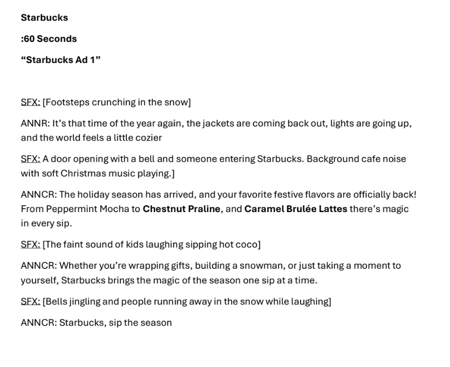 Starbucks Radio Ad Script
